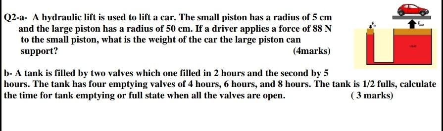 Solved Out Q2 A A Hydraulic Lift Is Used To Lift A Car The Chegg Com